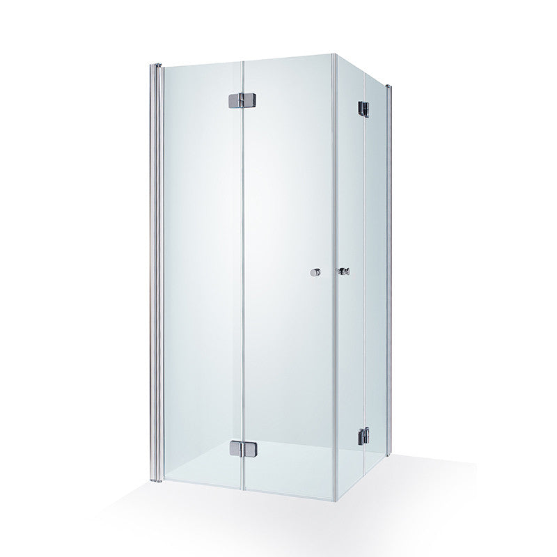 Suihkuseinä taittuva välisaranalla, Indoor Kaste. Lev. 90cm/ oikea.Kirkaslasi /kiilt. kromi profiili.